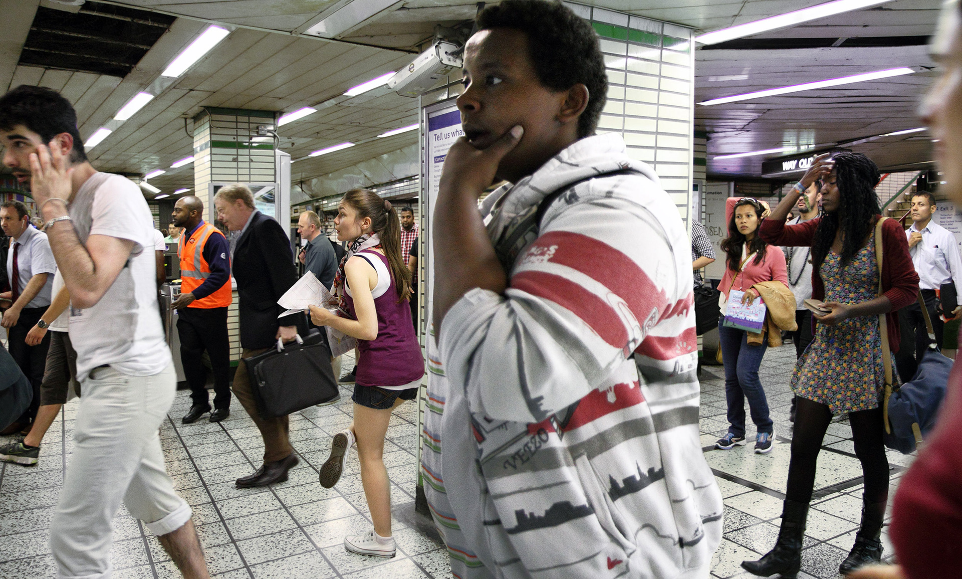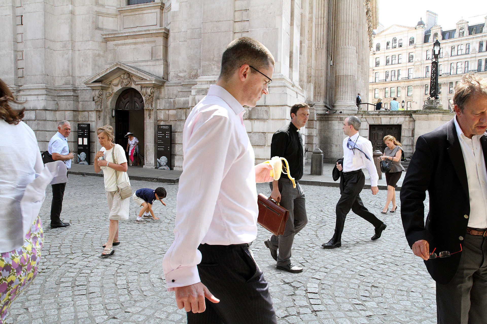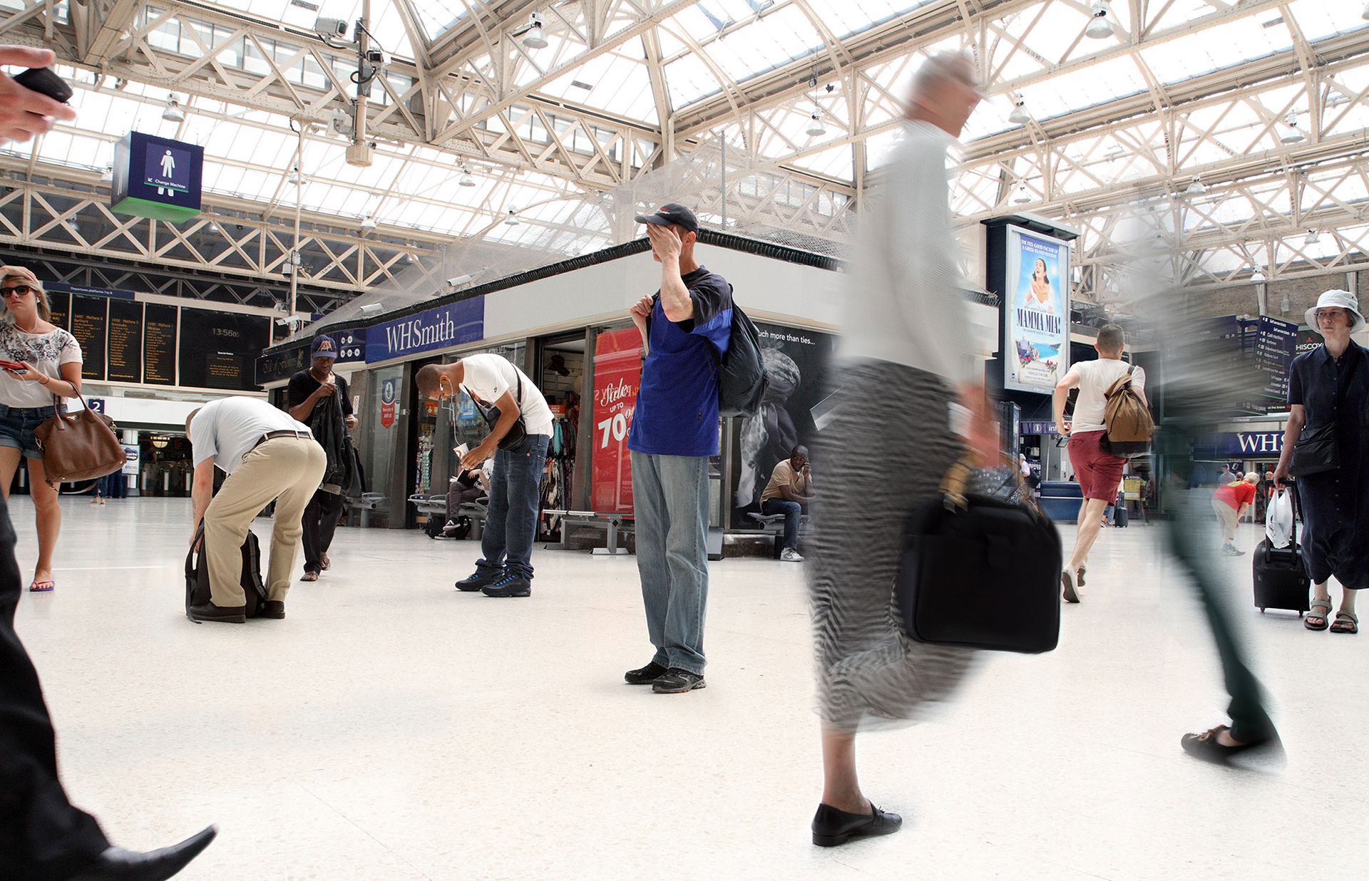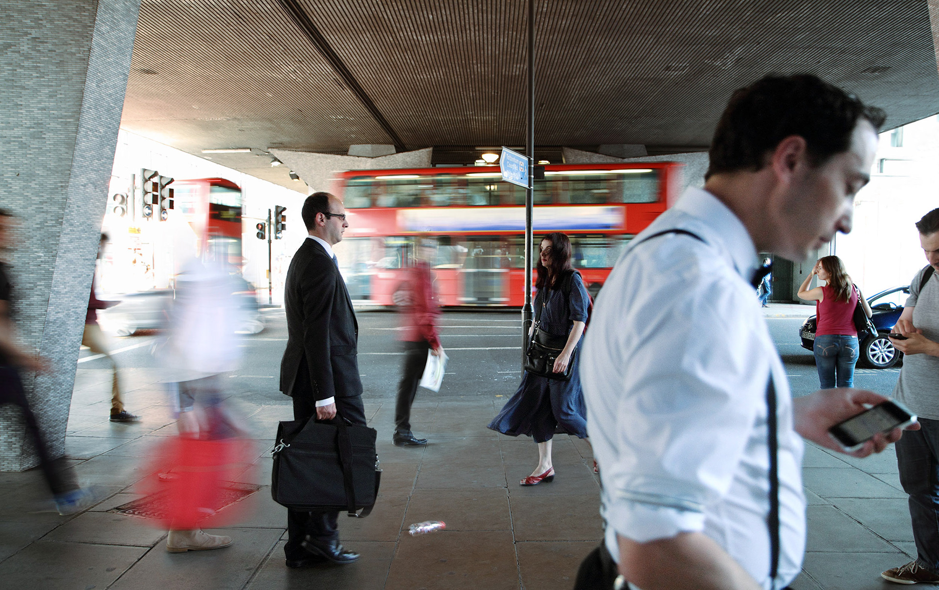 The Post Memories project frees photography from restrictions of the single exposure, using enduring compositional methods to select characters and visual elements that all existed in the place that we see them, just not all at the same time. No models or actors are used and there is no direction of the action. The images are documented real moments, taken out of time to create scenes that never existed, yet with nothing added or invented. This contradiction conjures stories behind each individual, examining the way we perform and interact with each other in different environments, cultures and communities. The images transmit everyday life of London citizens, focusing on the individuals behaviour and attitude within different contexts and locations across the city.